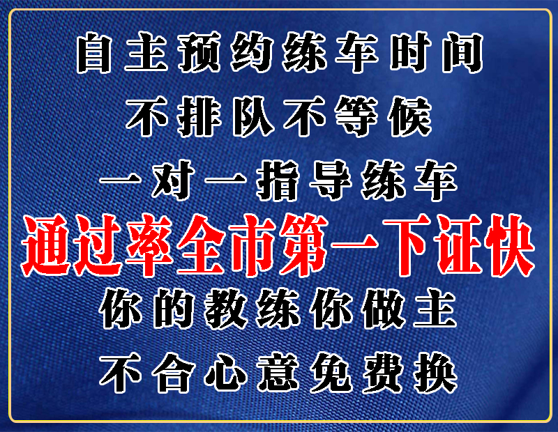 縣黃金地段練車場,無論您在哪里,都能就近練車,自由約,自由學,開創(chuàng)中國三步標準學車流程,讓您在報名后沒有后顧之憂!